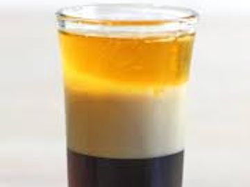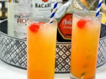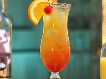 Cocktail made of dark rum, coconut rum, coffee liqueur, 151 rum, lime juice, pineapple juice, and orange juice.