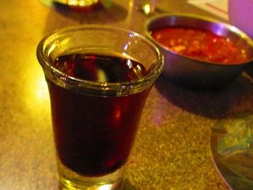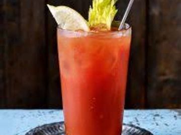 Cocktail containing vodka, tomato juice, and other spices and flavorings