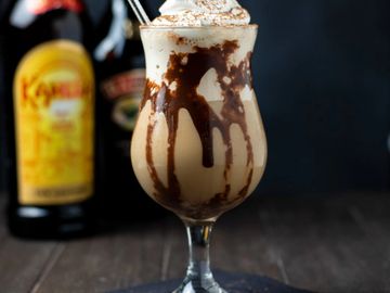 The Boozy milkshake made of Vanilla ice cream, Baileys, vodka, coffee liqueur, milk and chocolate